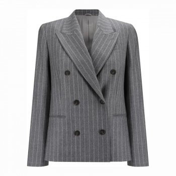 Brunello Cucinelli Virgin Wool Pinstripe Double-Breasted Blazer Jacket