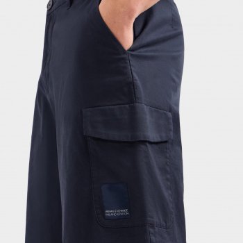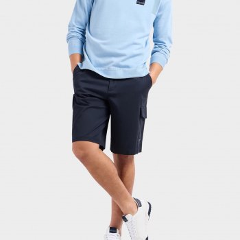 The Armani Exchange Men’s Blue Cotton Shorts are designed with both comfort and practicality in mind. Here’s a breakdown of their key features: