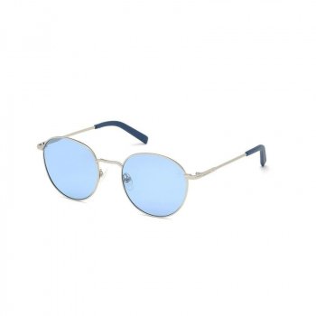 Timberland Men’s Silver Round Polarized Sunglasses with Blue Lenses